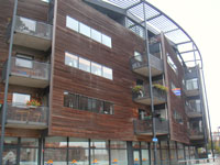 ![]() ■電話会社のビル。まん中から出てる棒で建物を支えているように見える。窓は上から下まで全て電光掲示板。テキストがたえず流れる。 ![]() ■キューブハウス。写真参照 ![]() ■古い建物もかっこいい。 ![]() ■集合住宅。回り込むような形がきれい。表面は木のサイリング。かっこいい。 |